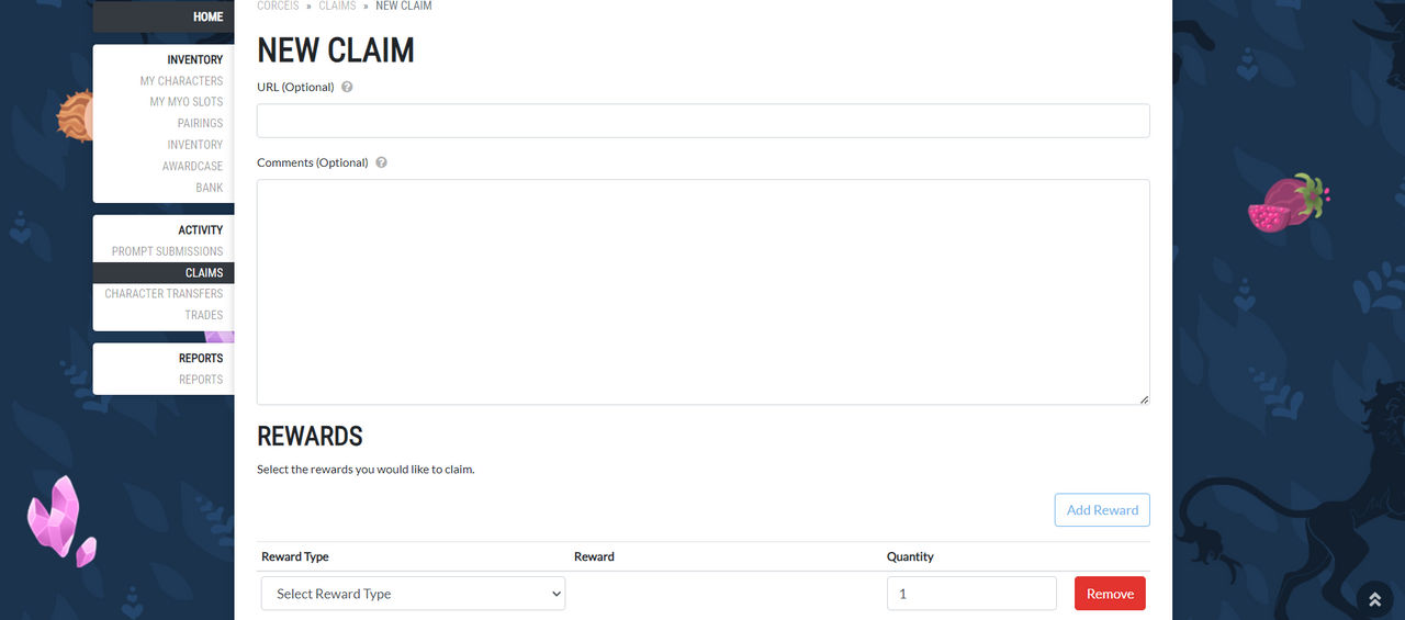 ● Step 2: After that, a new claim will pop up, in Comments you will write the sort of award you want, and proof to claim such (each reward has different requirements! you can check on Awards )