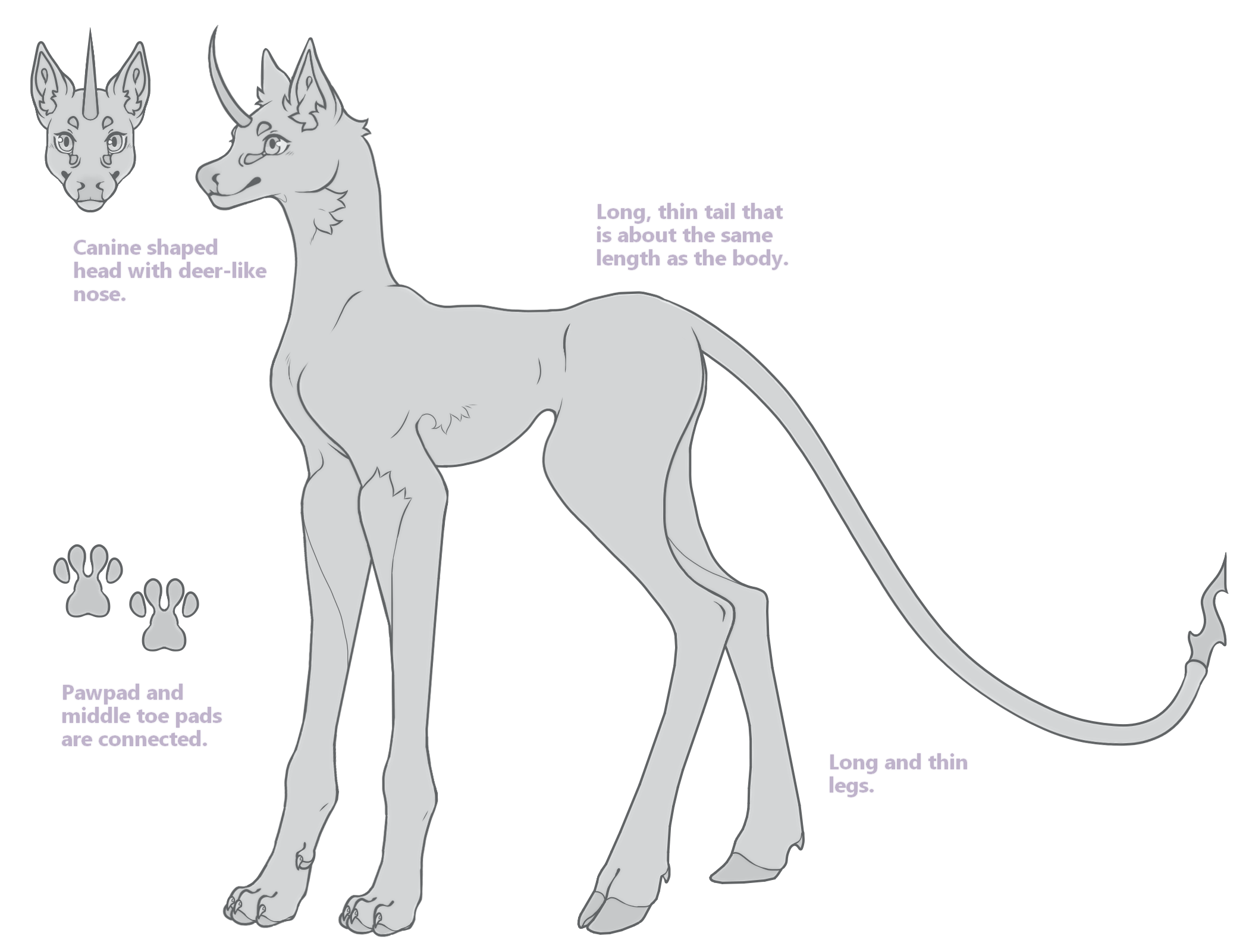 They are known for being agile and fast creatures; their size can vary from as small as 6ft up to 8ft (from toe to shoulder); of course, this does not count the mutations some can be born with, such as munchkin and gigantism. Usually, they are very lean and long creatures, their legs alone making up 60-70% of their height, but it does not mean they cannot have a variety of body shapes and sizes. Some may be naturally larger; some may have more developed muscle structure, giving them more oversized paws, etc; genetics play a vital role in determining your corceïs' natural appearance. |