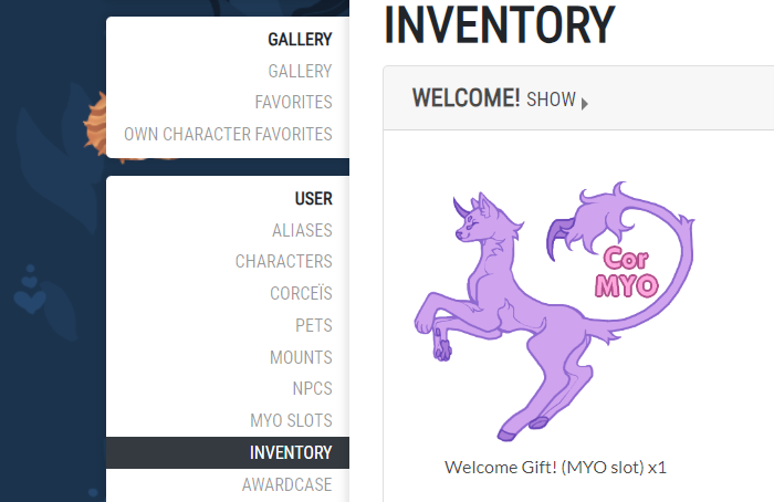 To make your corseïs, you will need a MYO slot (Make-Your-Own)! Now, how do you get one? Simple! You can find it in our Tokens Shop! You can buy a MYO by completing prompts to be rewarded with Crystal Shards or USD via Paypal! This guide also works for pets/mounts.