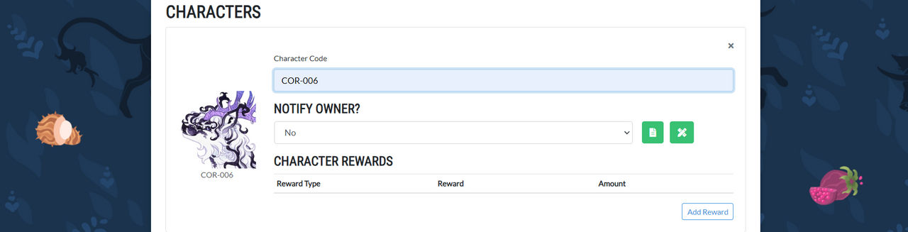 ● Step 4: Once you have added your Prompt, you must select which characters are present in it! To do so, you will need to head over to their masterlist and grab their Code (the first 3 letters and 3 numbers!), if done correctly, their images will appear on the corner! With that done, you may now click on Submit!