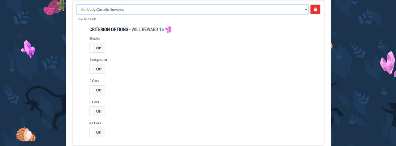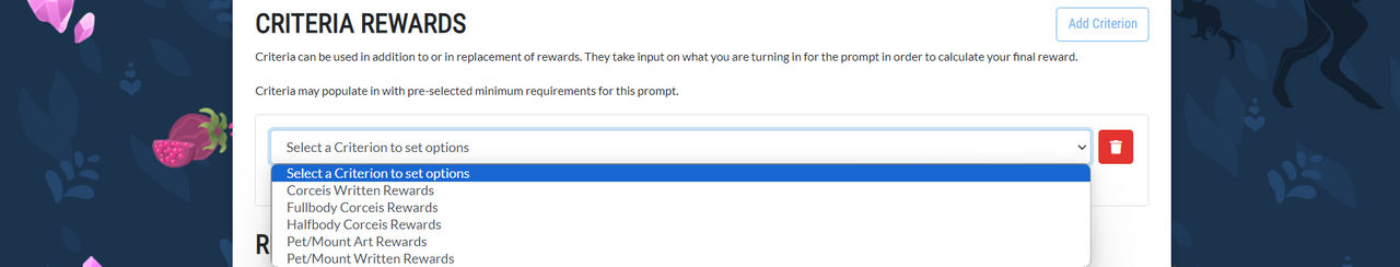 ● Criteria Rewards: Once you select the Prompt and fill in everything, in criteria rewards, you will choose which sort of breakdown your Prompt fits in the best.