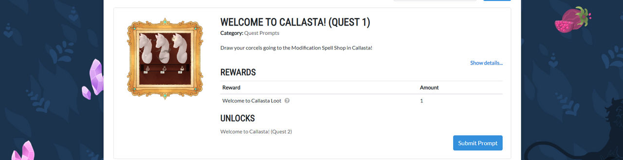 Prompts are art/literature pieces you can submit on Prompts and gain rewards such as currency! You can check more about the types of prompts when they are open, what rewards you can get, and the minimum requirement: Prompt Reward.