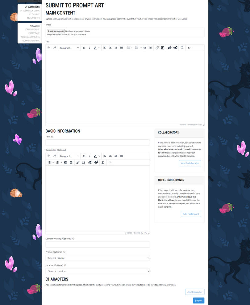 ● Step 1: First, submit your drawn/written Prompt to the Galleries. Fill in all the needed information.